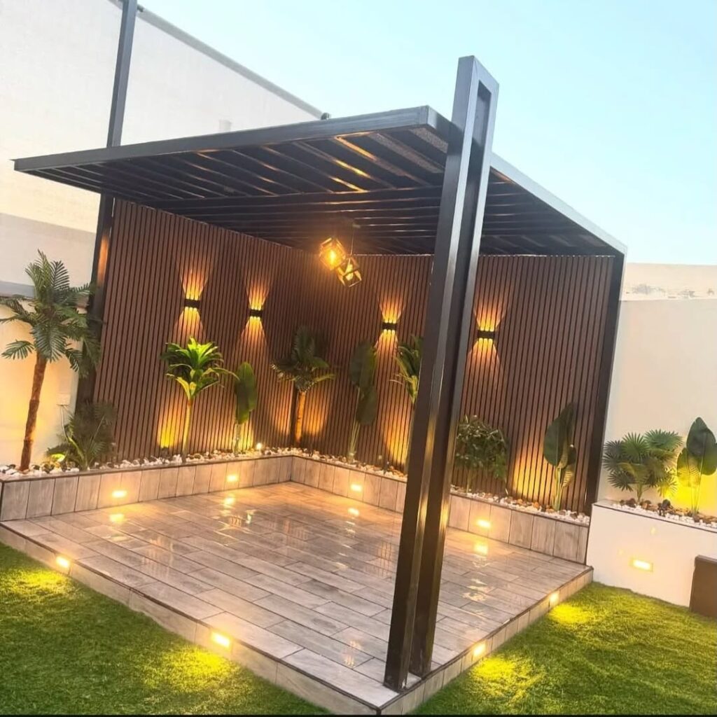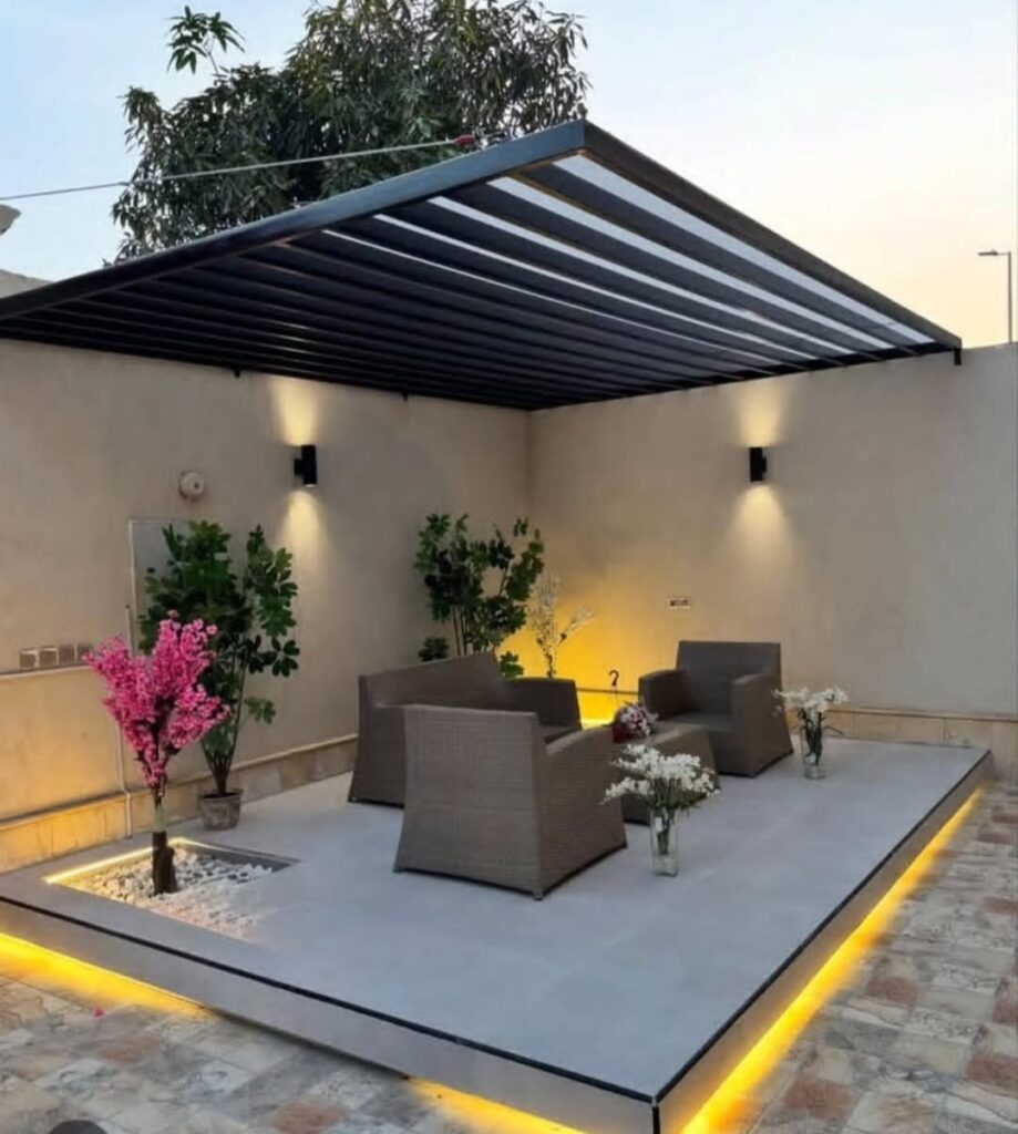 نوفر مظلات للحدائق، المداخل، مواقف السيارات، الجلسات الخارجية، والمسابح، مع خيارات متنوعة من الأقمشة والهياكل الحديدية.