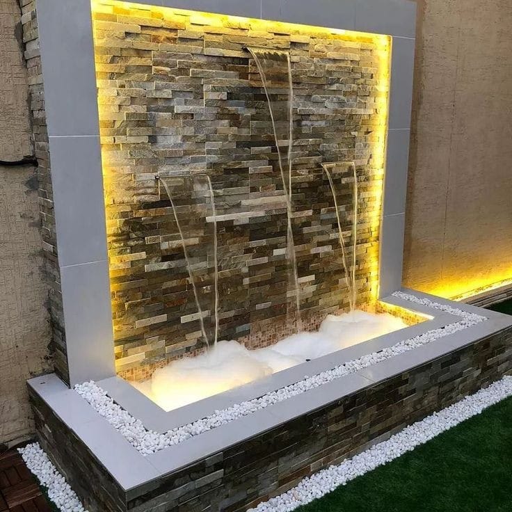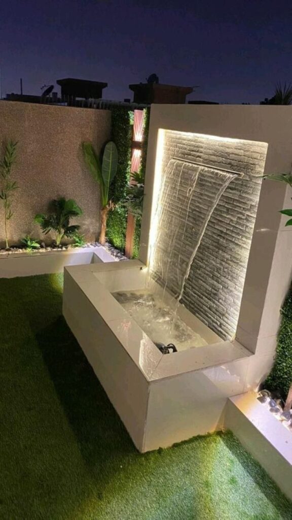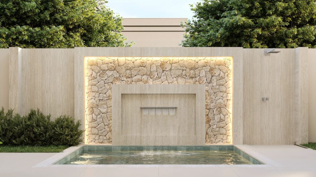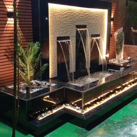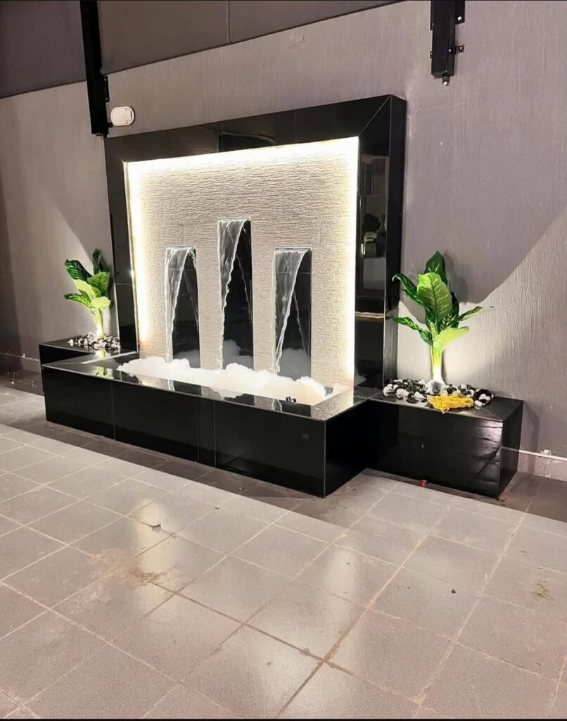 نصمّم الشلالات بأشكال عصرية وكلاسيكية، مع إمكانية دمج الإضاءة والعناصر الحجرية لخلق أجواء مميزة ومريحة.